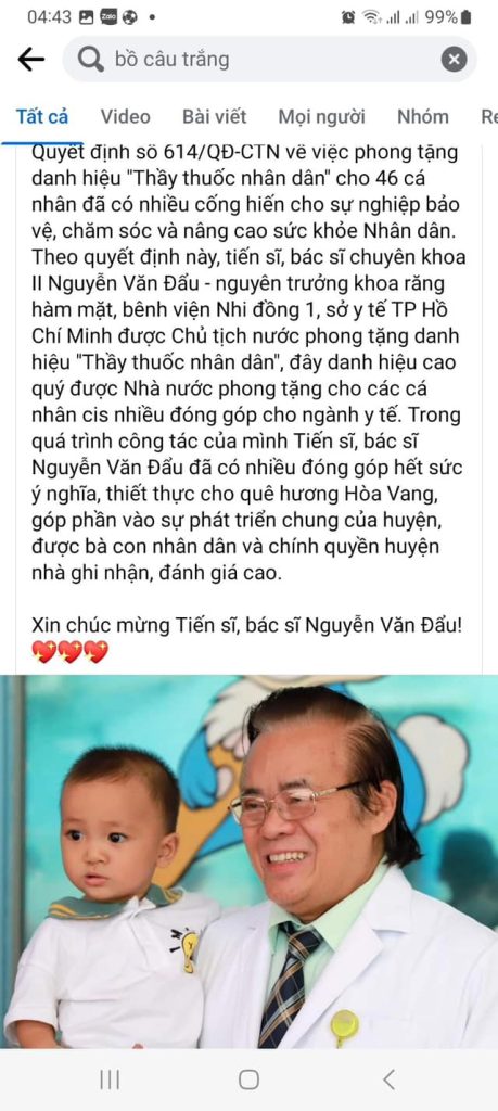 Một lần nữa chúng ta cùng chúc mừng Bs. Nguyễn Văn Đẩu và những người công tác trong ngành y nói chung